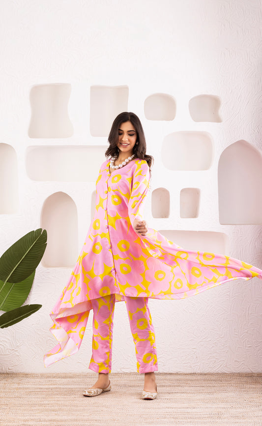 Pink Floral Co ord Set with bell sleeves