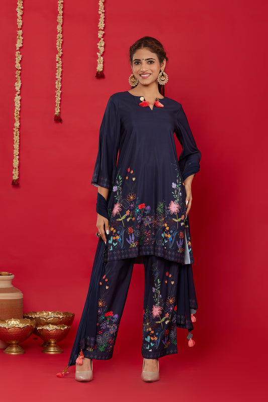 NEELA GULZAAR KURTA WITH PALAZZO AND DUPATTA