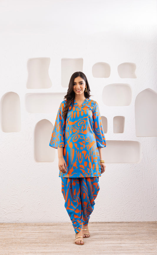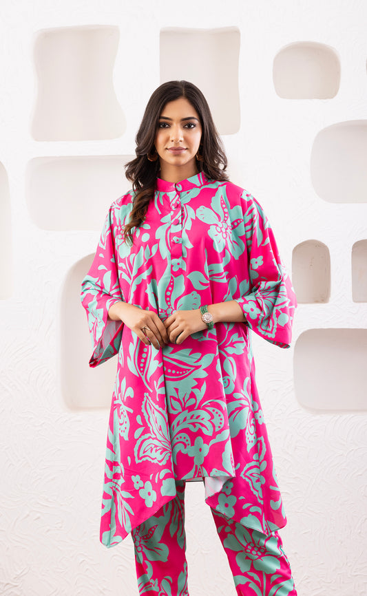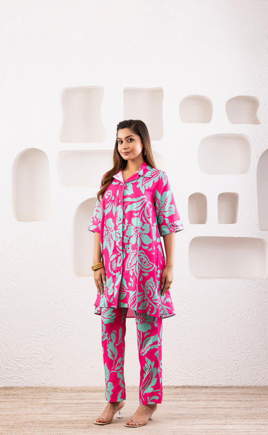 Pink Coin Neck Kurta with Pants and a Dupatta